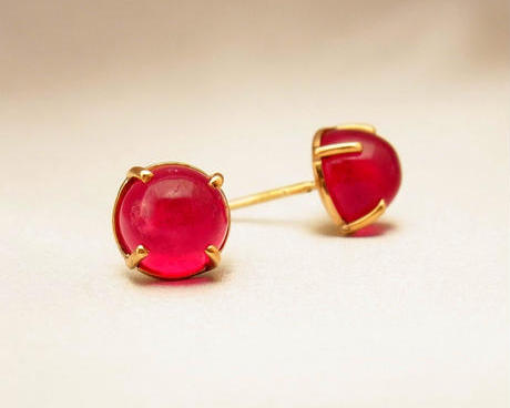 k18ygでカボションカットのルビーを、シンプルな4本爪のピアスにしました。